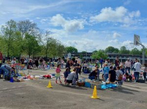 Bei schönstem Wetter und bester Laune fand am Samstag 06.05.23 der erste Spielzeug- und Bücher-Flohmarkt auf dem Pausenhof der GWRS statt. Organisiert wurde dieser vom Förderverein Auwiesenschule. Schüler:innen der Klassen 1 bis 7 durften einen Verkaufsstand anmelden. Voll motiviert kamen die Kinder mit ihren Eltern und bauten ihre Stände auf. Von 10 bis 12 Uhr gab es die Möglichkeit an ca. 55 Ständen unter den vielen tollen Sachen zu stöbern und Schätze zu ergattern. Die Anzahl der Besucher hätte etwas höher sein dürfen, dennoch ließ man sich die Laune nicht verderben und handelte auch kräftig untereinander.